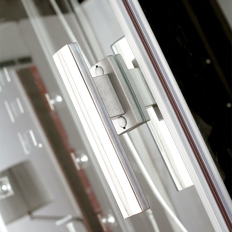 Kabína vyrobená z bezpečnostného skla ESG 8 mm, zadné steny z nepriehľadného skla Real Mat v bielej farbe. Bočné hliníkové profily sú matne šedé z hliníku. Vysoko kvalitné pevné kovové pánty a kovanie. Kvalitná termostatická batéria, sprchová hlavica, elektronický ovládací panel Sauna para - efektívny parogenerátor 4,5 kW s ochranou proti behu "suché" a tepelnej ochrany, farebná svetelná terapia, 6 hydromasážnych trysiek na masáž chrbtice s nastaviteľným uhlom sklonu.Magnetické uzatváranie dverí, Sklenená polička na sprchovací šampón, Ručná sprcha, tropická sprcha,Turecké parné kúpele s nádobou na éterické oleje, Digitálny dotykový ovládací panel,Zabudovaný FM prijímač, odsávač pár, Sklapovacia stolička