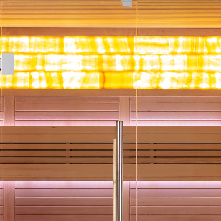 Zadná stena s podsvieteným červeným/žltým mramorom (hrúbka steny 46 mm)