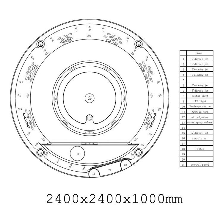 2400 mm x 2400 mm x 1000 mm (dĺžka x šírka x výška)