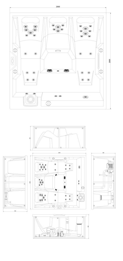 2000 mm x 2000 mm x 900 mm (dĺžka x šírka x výška)