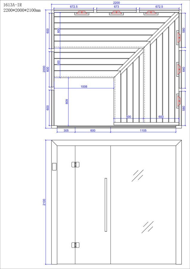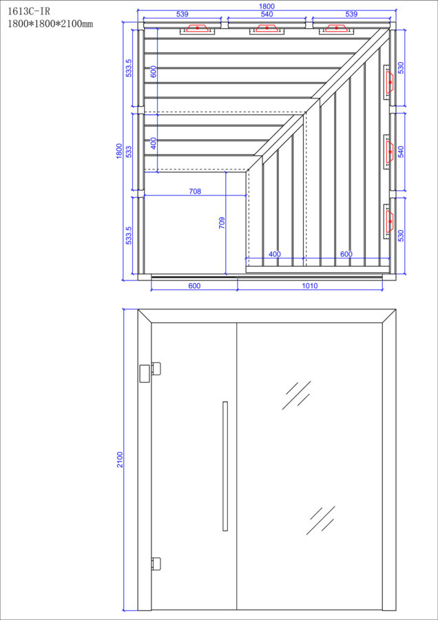 AWT infrasauna E1613C-IR Hemlock 180x180