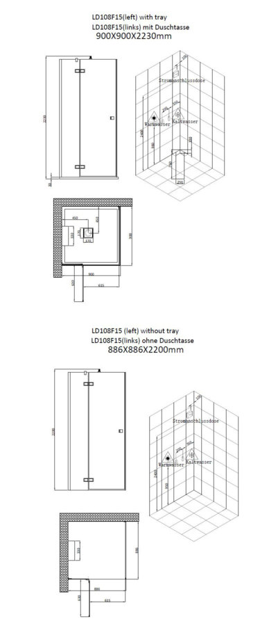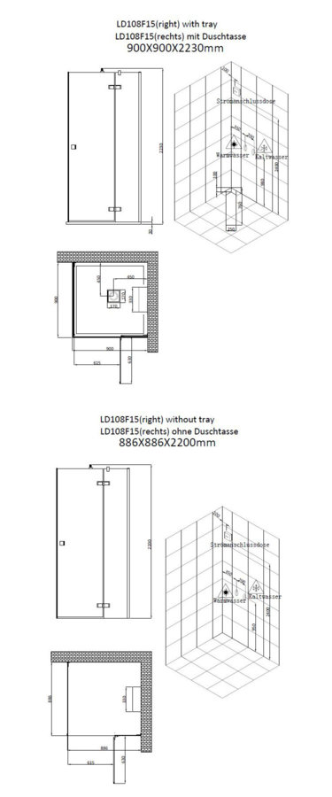 AWT LD106F15 parná kabína 983 mm x 983 mm x 2155 mm, výber čierna, biela (lesklá/matná), strieborná, verzia pravá /ľavá