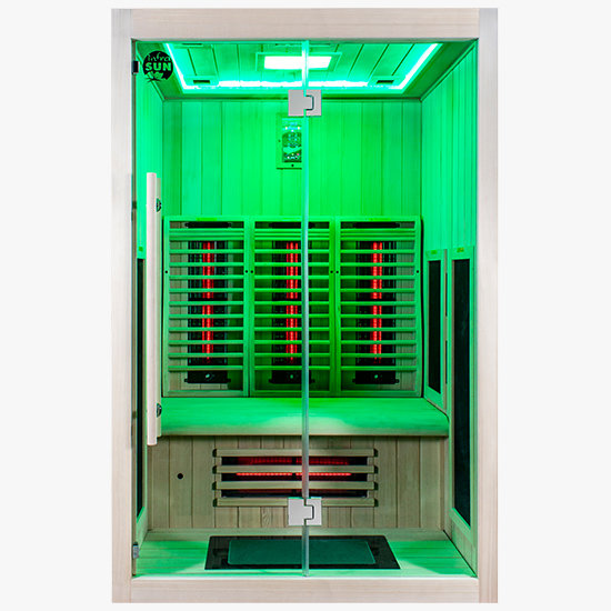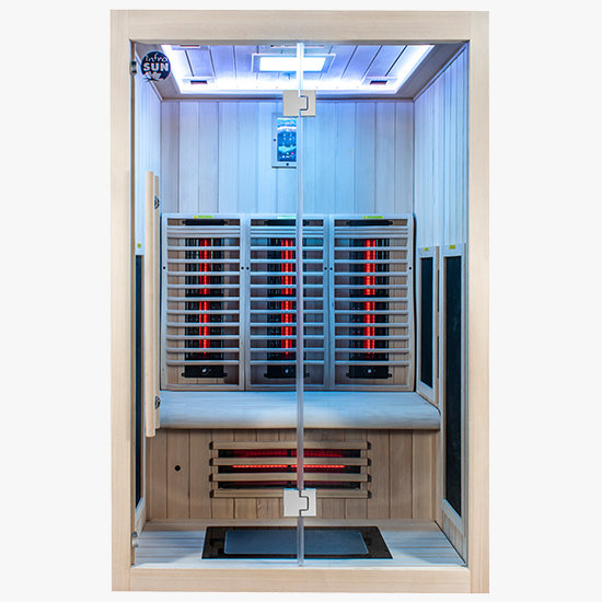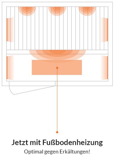 5 karbónové povrchové žiariče (boky + chodidlá) Uhlíkový povrchový tepelný radiátor - Veľké radiačné polia majú rovnomernú povrchovú teplotu a vyžarujú homogénne teplo a zabezpečujú jemné teplo v celej kabíne – celé vaše telo je zahalené teplom. Infračervené teplo jemne preniká do vrchnej vrstvy pokožky a zaisťuje príjemnú relaxáciu. Vzduch v miestnosti sa neprehrieva a našim zákazníkom je to mimoriadne príjemné. Potíte sa zvnútra von so všetkými výhodami pre vaše zdravie. Povrchové žiariče vyžarujú v infračervenej oblasti C a majú povrchovú teplotu 37 až 60 °C. Sedenie je veľmi uvoľnené, nemusíte udržiavať minimálnu vzdialenosť od plošného radiátora. Mimoriadne jemný a vhodný aj pre starších a citlivých ľudí, ako aj deti.