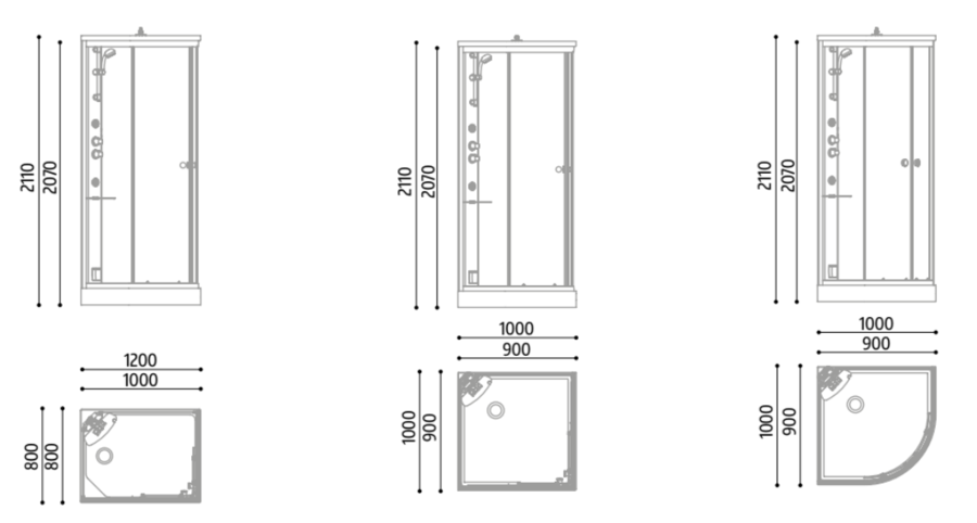 - vonkajšia výška verzie "Sprcha" a "Para": 211 cm