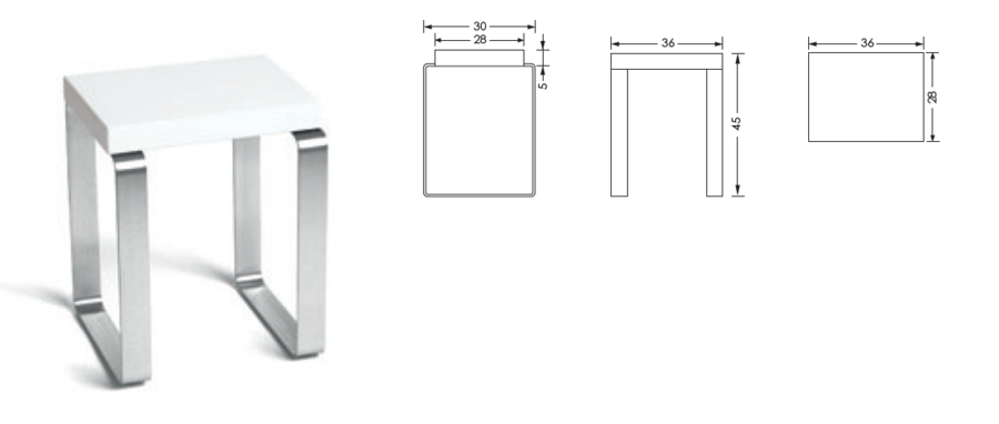 Taburetka s rámom z brúsenej nerezovej ocele, sedadlo z PU peny vo farbách Arctic White a Black. výška sedadla 45 cm; Sedadlo 36 x 25 cm