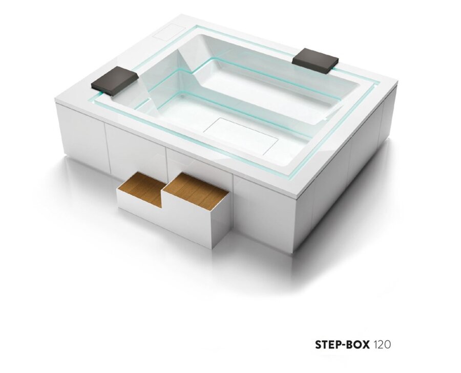 Tieto schodíky sa vyznačujú mimoriadne čistým a elegantným dizajnom, ktorý dokonale ladí so štýlom minibazénov Ghost a Ghost Plus. Ponúkajú pohodlné, funkčné a všestranné riešenie prístupu k bazénom. Konštrukcia Step Box je vyrobená z materiálu Crystaltech a obsahuje lamely s drevenou povrchovou úpravou, čo zaručuje nielen estetickú príťažlivosť, ale aj odolnosť a spoľahlivosť.