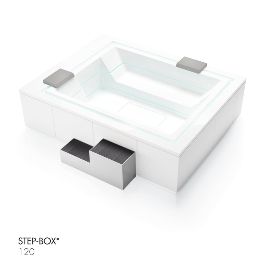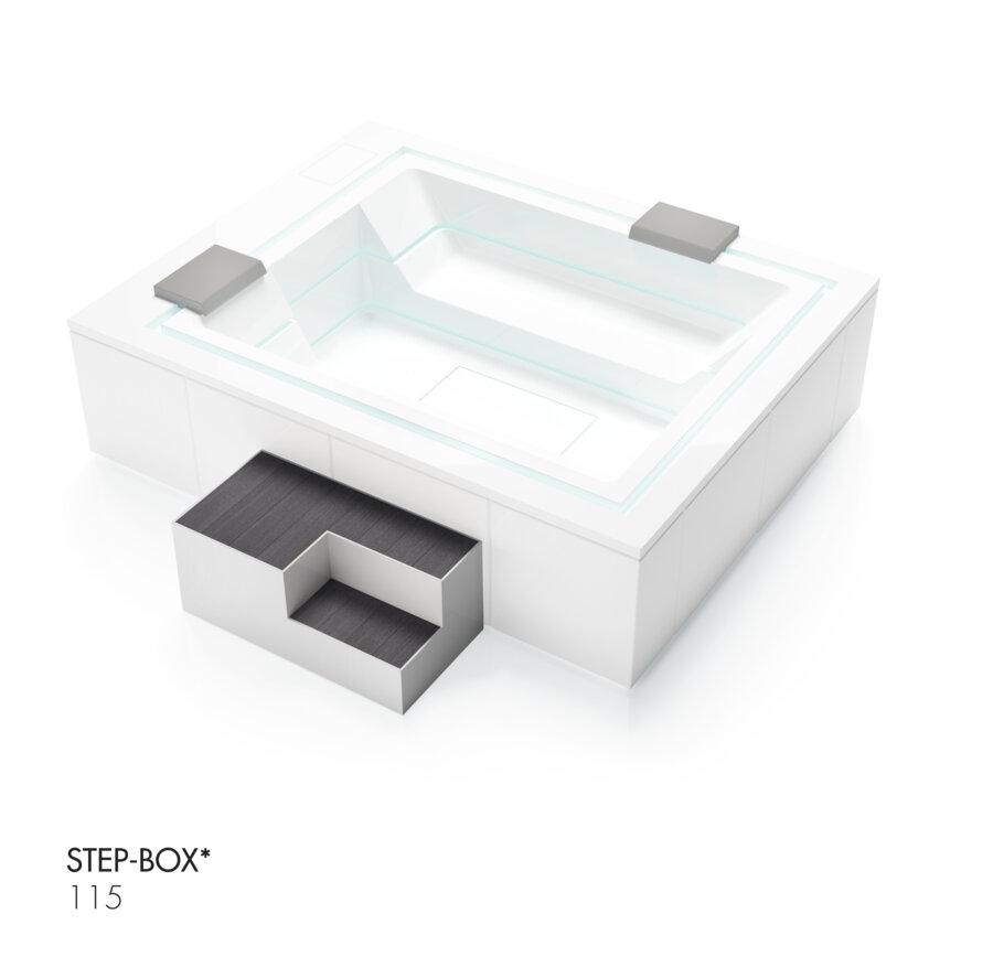 Pre jednoduchší a bezpečnejší prístup do víriviek vybavených technológiami Ghost a Ghost Plus predstavuje značka Treesse praktický doplnok – Step-Box. Tento modulárny systém schodov je navrhnutý tak, aby uľahčil vstup a zároveň esteticky dopĺňal dizajn víriviek.