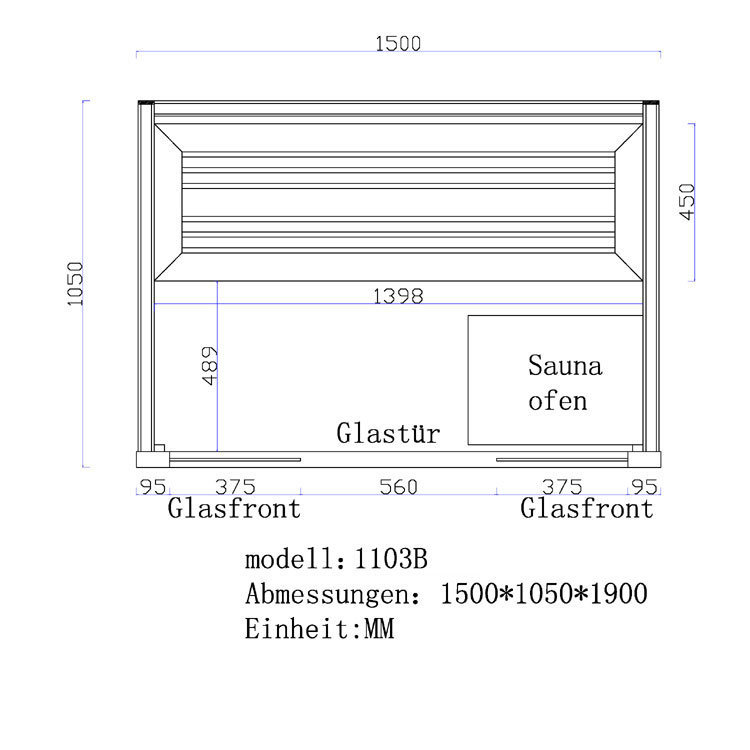 Sauna AWT B1103B topoľ 150x105 3kW EOS BiO-Mini