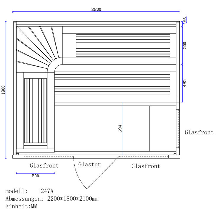 Sauna AWT B1247A topoľ , 220x180, 9 kW EOS BiO-Max