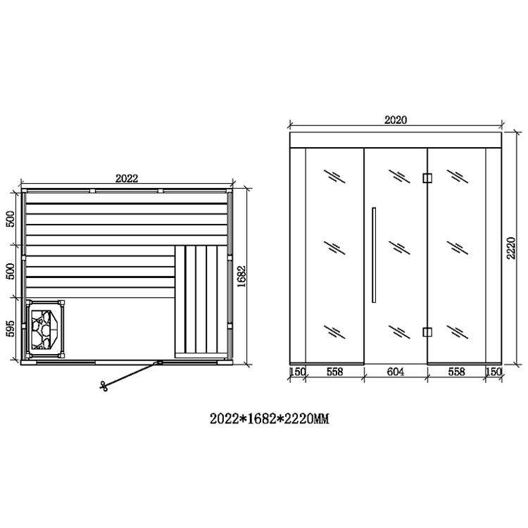 Sauna AWT E1205C, 202x168, Topoľ/Osika, Harvia 9kW Vitra