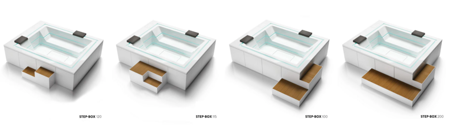 k dispozícii praktická a elegantná odkladacia priehradka integrovaná do dizajnu vane a navrhnutá na pohodlné uloženie krytu minibazéna