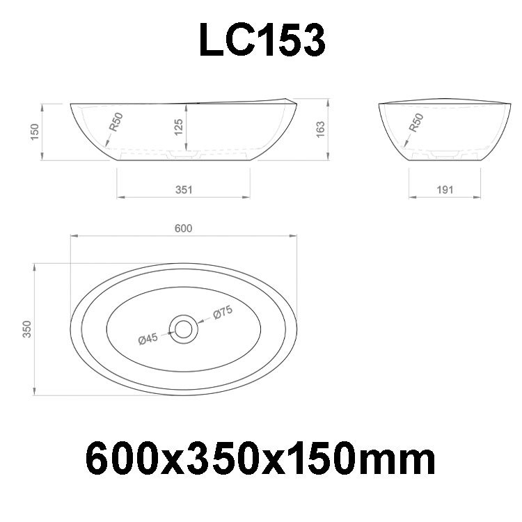 Stoneart umývadlo LC153 minerálny kompozit 60x33cm tmavo sivá